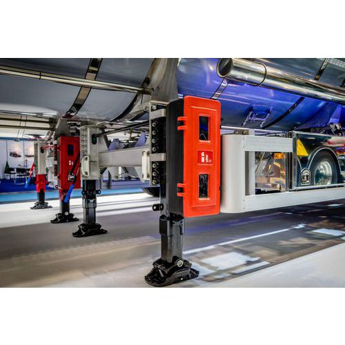 Kaappi kahdelle enintään 12 kg painavalle sammuttimelle, vahvistettu hihna. Oven avaussuunta voidaan vaihtaa (voidaan kiinnittää oikealle tai vasemmalle). Laadukas kumieriste. Polykarbonaatti-ikkunat, jotka estävät UV-säteet. Lukitustappi, saranat ja kiinnikkeet muovia.