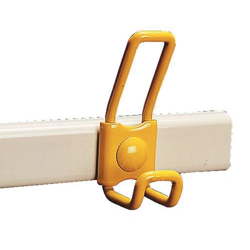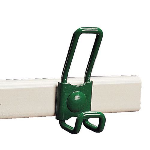 - Profiloituun teräspalkkiin asennettu koukku. Asennuskohta jää piiloon.