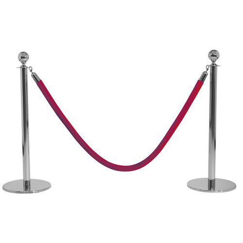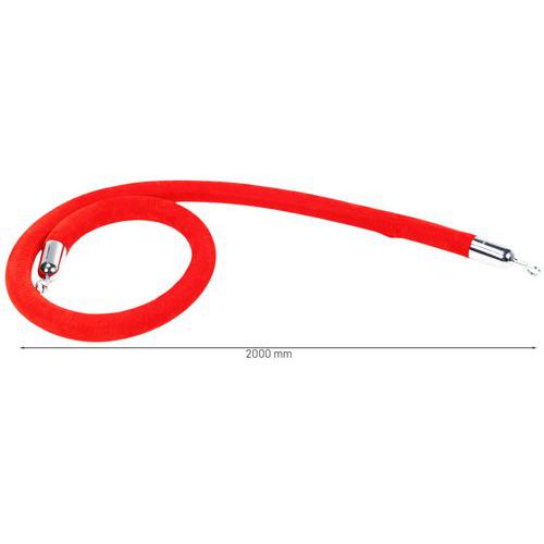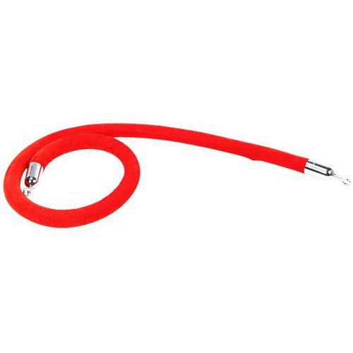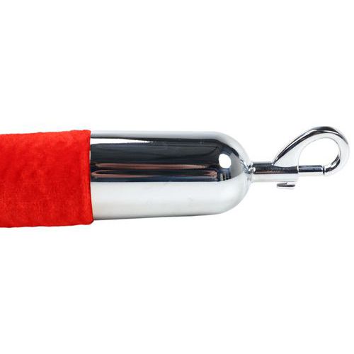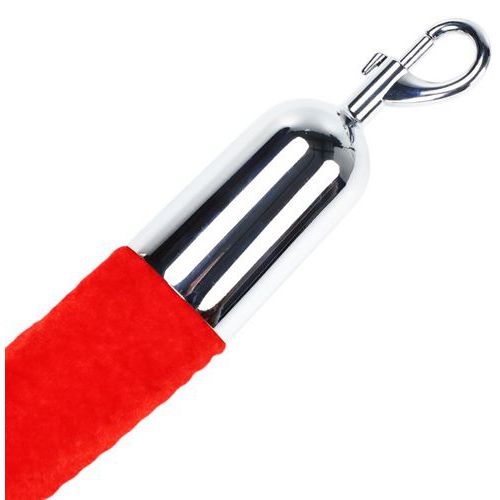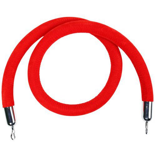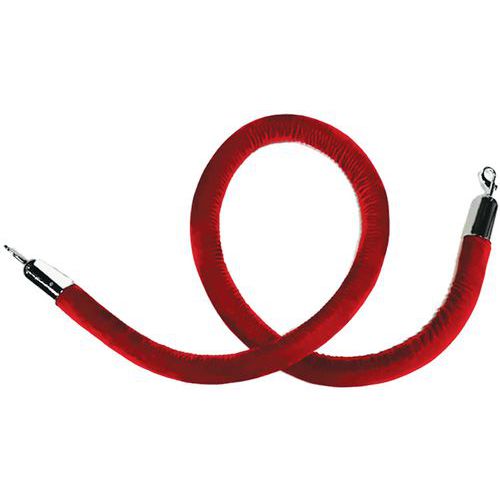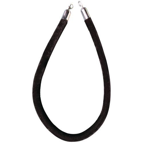 Karabiinihakasella varustettu köysi, valmistettu veluurista.