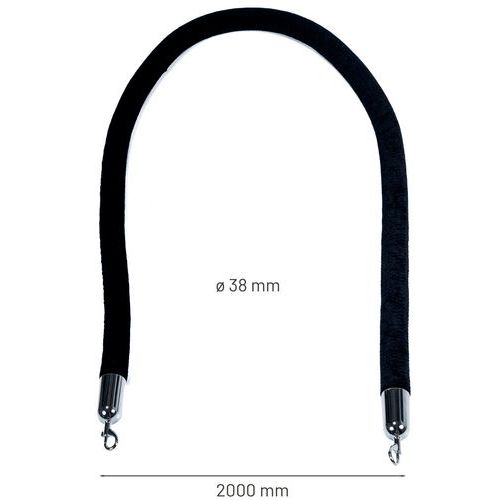 Karabiinihakasella varustettu köysi, valmistettu veluurista.