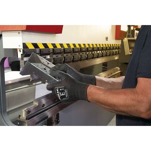 - Saumaton neulottu käsine, joka tarjoaa maksimaalisen mukavuuden, näppäryyden ja joustavuuden sekä korkean viiltosuojauksen (taso E).
