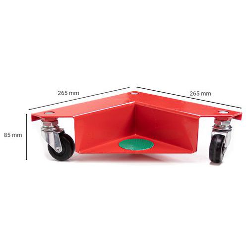 | Tavaranimike | Kulmakuljetin 600 kg, Kapasiteetti: 600 kg, Pituudet: 265 mm, Leveys: 265 mm, Korkeus: 85 mm, Maavara: 27 mm |