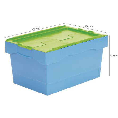 Kuljetuslaatikko värill 600 mm, Tilavuus: 55 L, Materiaali: Muovi, Kokonaiskorkeus: 315 mm Kuljetuslaatikko värill 600 mm, Tilavuus: 55 L, Materiaali: Muovi, Kokonaiskorkeus: 315 mm