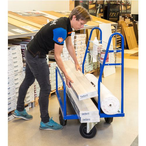 | Tavaranimike | Kuljetusvaunu sininen, Kapasiteetti: 500 kg, Kokonaiskorkeus: 320 mm, Kokonaisleveys: 700 mm |