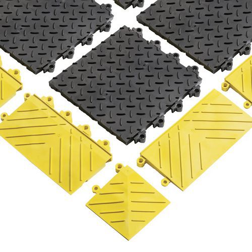PVC-alustat suojaavat lattioita ja keventävät kuormitusta. Poikkeuksellinen kuormitusta keventävä vaikutus ainutlaatuisen koostumuksen ja joustavan muotoilun ansiosta. Saatavana valmiiksi koottuna tai paneeleina koottavaksi paikan päällä. Kiinteä, pysyvä asennus varmistaa tukevan pidon. Liimaa ei tarvita. Helppo asentaa paikan päällä mukautettuja kokoonpanoja varten. Luistamaton pinta, joka on suunniteltu varmistamaan tukeva pito. Saatavana reunuksella varustettuna helpon pääsyn varmistamiseksi ja kompastumis- tai kaatumisriskin estämiseksi. Soveltuu vaativaan käyttöön kuivissa teollisuusympäristöissä. Luistamaton vinoneliörakenne, R10-luokitus standardin DIN51130 ja BG-BGR181-määräysten mukaisesti. Kestää synteettisiä ja hydraulisia öljyjä. Cfl-S2-paloluokitus testattu standardin DIN EN ISO 13501 mukaisesti, luokitus 1 NFPA-turvakoodin 101 standardin ja IBC 804.2 ‑luokituksen mukaisesti. Testausmenetelmä ASTM E648-03. Keltainen turvareunus standardin OSHA Code 1910-144 mukainen. Ei sisällä haitallisia tai myrkyllisiä aineita.