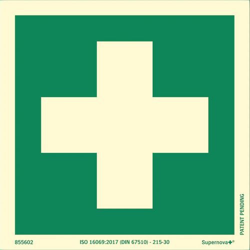 Kyltti Supernova+® ensiapu, Tarra: ei, Taipumaton: kyllä, Kilpi, muoto: Quadrant, Kilpi tyyppi: Hätätilanne Kyltti Supernova+® ensiapu, Tarra: ei, Taipumaton: kyllä, Kilpi, muoto: Quadrant, Kilpi tyyppi: Hätätilanne