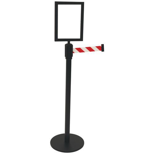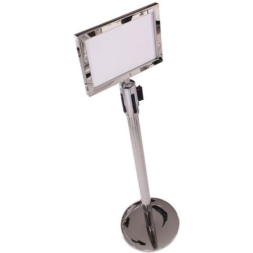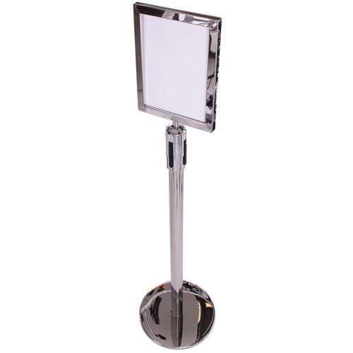 Kehyksellinen tiedoteteline A4. Sisältää 1 sovitteen pylväälle. Kylttipidike, joka sopii vain pylvääseen, nauhan pituus 2 m. Tarvikkeita Rajauspylväs, nauhalla 2 m.