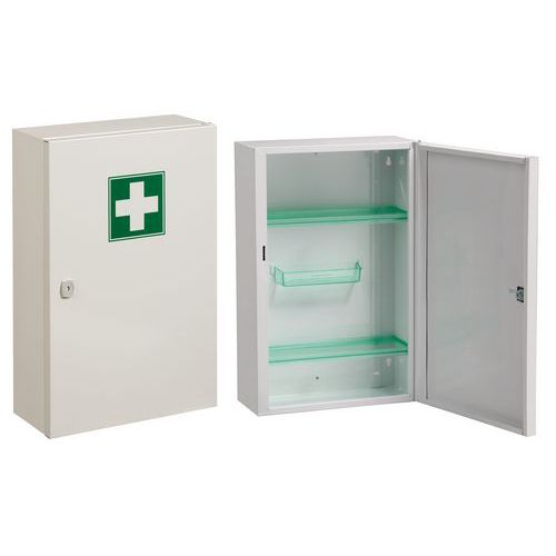 | Tavaranimike | Lääkekaappi Basic, Korkeus: 455 mm, Ovien määrä: 1, Leveys: 310 mm, Syvyys: 145 mm, Materiaali: Teräs |