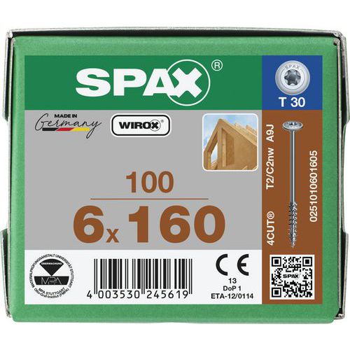 Laatikko 100 puuruuvia Ø 6 mm levypää TX, Materiaali: Teräs, Gängning Ø: 6 mm, Ruuvin syvennys: Torx