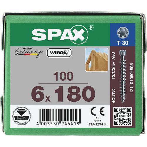 Laatikko 100 puuruuvia sylinterimäinen kanta TX Ø 6 mm - Spax