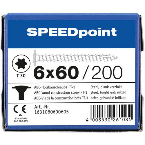 Laatikko 200 puuruuvia, levypää TX Ø 6 mm - SpeedPoint