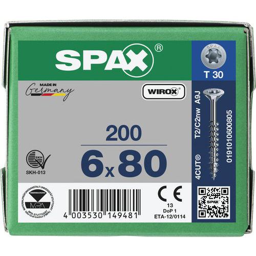 Laatikko 200 yleisruuvia T-Star Plus uppokanta TX Ø - Spax