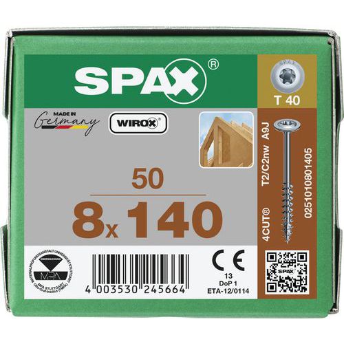 Laatikko 50 puuruuvia Ø 8 mm levypää TX - Spax