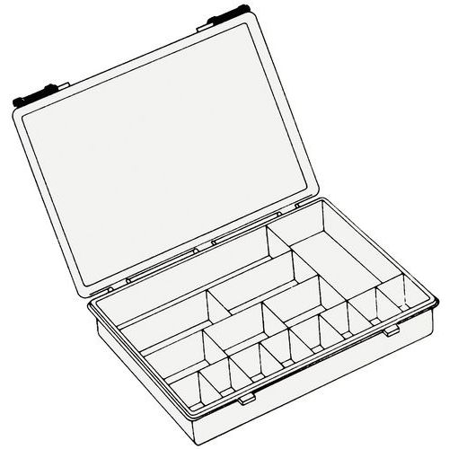 Laatikko iskunkestävillä osastoilla, Maks kuormitus: 5 kg, Kokonaiskorkeus: 57 mm, Kokonaisleveys: 340 mm Laatikko iskunkestävillä osastoilla, Maks kuormitus: 5 kg, Kokonaiskorkeus: 57 mm, Kokonaisleveys: 340 mm