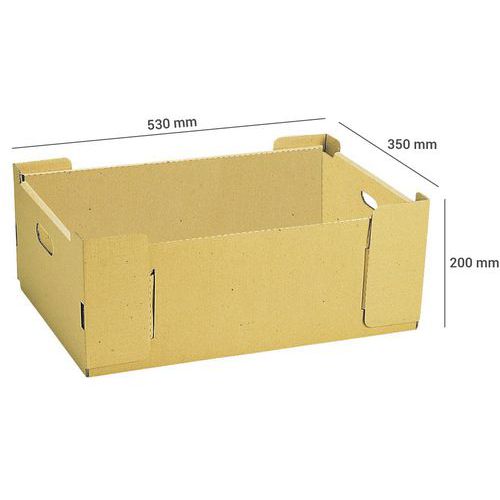 | Tavaranimike | Laatikko kokoontaittuva pahvia, Tilavuus: 25 L, Kokonaiskorkeus: 200 mm, Kokonaisleveys: 350 mm |