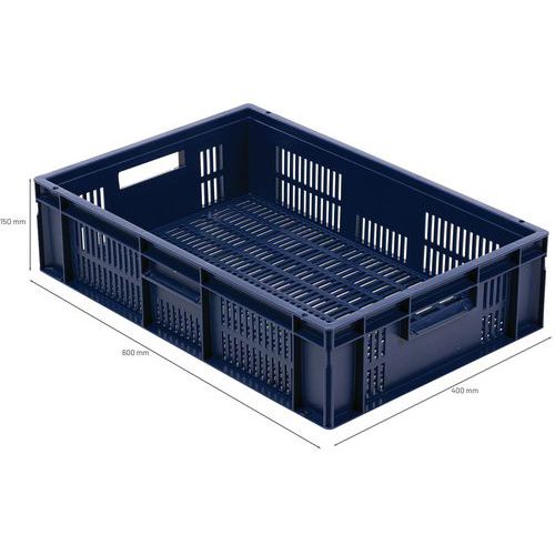 Laatikko Rei'itetyt seinät/pohja, Tilavuus: 28 L, Pinottava: kyllä, Kokonaiskorkeus: 150 mm Laatikko Rei'itetyt seinät/pohja, Tilavuus: 28 L, Pinottava: kyllä, Kokonaiskorkeus: 150 mm