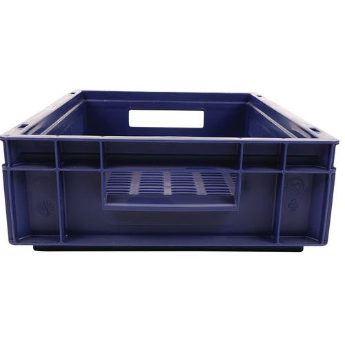 Vakiokokoinen laatikko polypropyleeniä (PP). Soveltuu erinomaisesti pinottavaksi eur-lavoille. Tavaroiden säilytykseen ja käsittelyyn. Erittäin vakaasti pinoutuva. Hyväksytty elintarvikkeille, kestää öljyjä, rasvoja ja monia kemikaaleja.