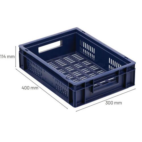 Laatikko Rei'itetyt seinät/pohja, Tilavuus: 10 L, Pinottava: kyllä, Kokonaiskorkeus: 114 mm Laatikko Rei'itetyt seinät/pohja, Tilavuus: 10 L, Pinottava: kyllä, Kokonaiskorkeus: 114 mm