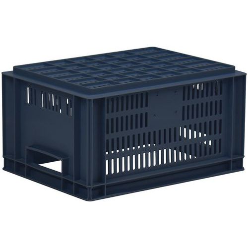 Vakiokokoinen laatikko polypropyleeniä (PP). Soveltuu erinomaisesti pinottavaksi eur-lavoille. Tavaroiden säilytykseen ja käsittelyyn. Erittäin vakaasti pinoutuva. Hyväksytty elintarvikkeille, kestää öljyjä, rasvoja ja monia kemikaaleja.