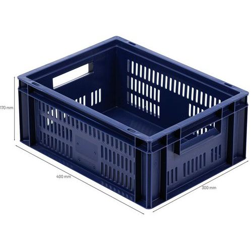 Vakiokokoinen laatikko polypropyleeniä (PP). Soveltuu erinomaisesti pinottavaksi eur-lavoille. Tavaroiden säilytykseen ja käsittelyyn. Erittäin vakaasti pinoutuva. Hyväksytty elintarvikkeille, kestää öljyjä, rasvoja ja monia kemikaaleja.