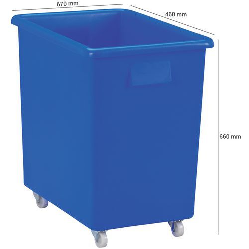 Laatikko pyörillä, keveä, Tilavuus: 135 L, Kokonaiskorkeus: 660 mm, Kokonaisleveys: 460 mm Laatikko pyörillä, keveä, Tilavuus: 135 L, Kokonaiskorkeus: 660 mm, Kokonaisleveys: 460 mm
