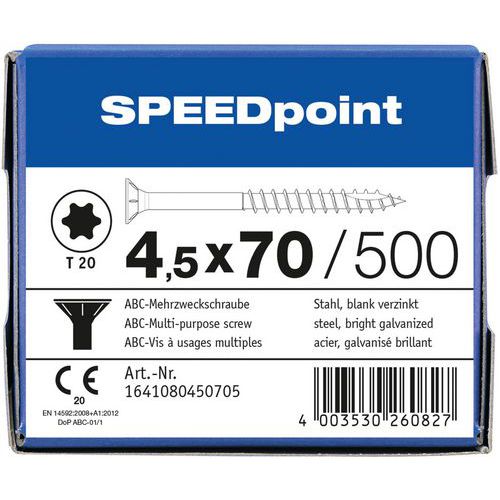 Laatikko sekoitettuja ruuveja uppokanta TX Ø 3,5-5 mm - SpeedPoint
