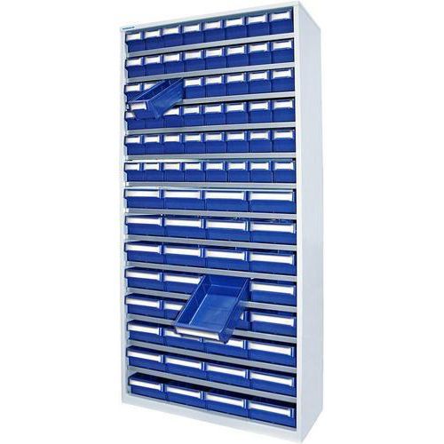 - Kaappi on valmistettu harmaaksi maalatusta teräslevystä. 80 Arca varastolaatikkoa 91-sarjasta 7,1 l (10 x 23 x 400 mm) + 3,4 l (10 x 11.5 x 400 mm). Reunojen ansiosta varastolaatikot pysyvät hyvin paikoillaan keräilyn aikana. Laatikot toimitetaan ilman nimilappuja ja väliseiniä