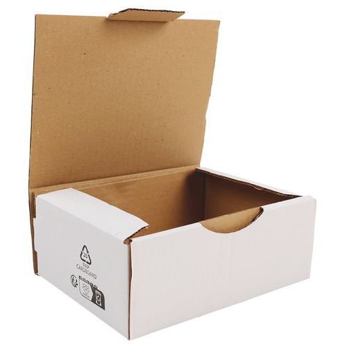 Speedbox on edullinen kuljetuslaatikko, jolla on monia käyttöalueita. Valmistettu valkoisesta yksiaaltoisesta pahvista. 100 % kierrätysmateriaalia. Laatikon taitteet tekevät siitä nopeasti ja helposti asennettavan. Toimitetaan osina 50 kappaleen litteissä pakkauksissa. 50 kpk/pakk 100 % biohajoavia.