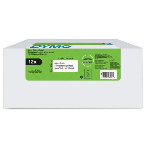 | Tavaranimike | LabelWriter suuri itseliimautuva palautustarra -Dymo®, Leveys: 54 mm, Tausta, väri: Valkoinen, Pituus: 25 mm |