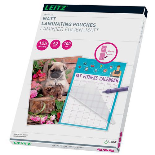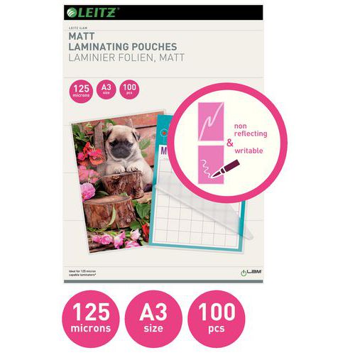 | Tavaranimike | Laminaatti matalalämpö matta A3, 100/pakkaus – Leitz, Paksuus: 125 µm, Muoto: 297 x 420 mm (A3) |