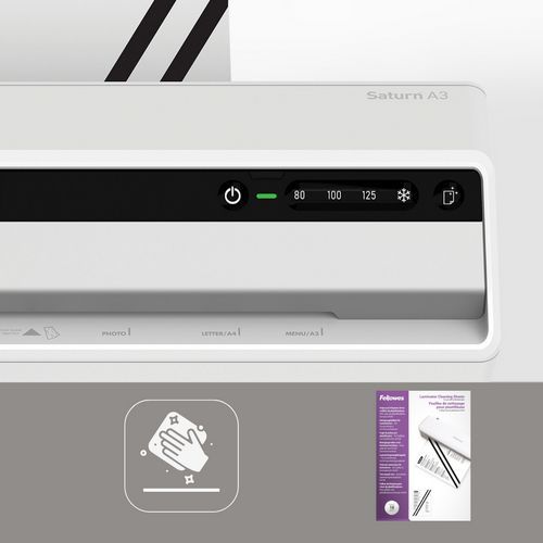 Laminoija Fellowes Saturn 3i, Asiakirjan enimmäispaksuus: 0.7 mm, Asiakirjamuoto: 297 x 420 mm (A3) Laminoija Fellowes Saturn 3i, Asiakirjan enimmäispaksuus: 0.7 mm, Asiakirjamuoto: 297 x 420 mm (A3)