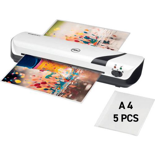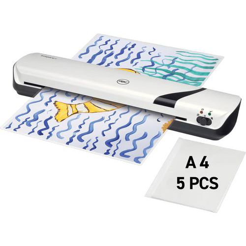 Se pystyy laminoimaan taskuilla, joiden paksuus on enintään 2x125 mikronia, mikä antaa asiakirjoille ammattimaisen ulkoasun.