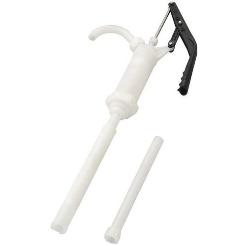 Vipupumppu polypropeenista. Soveltuu vedelle, alkoholille, bensiinille, voiteluaineille ja emäksisille liuoksille. Toimitetaan 889 mm nostoputkella, tuotto 0,3 litraa per isku.