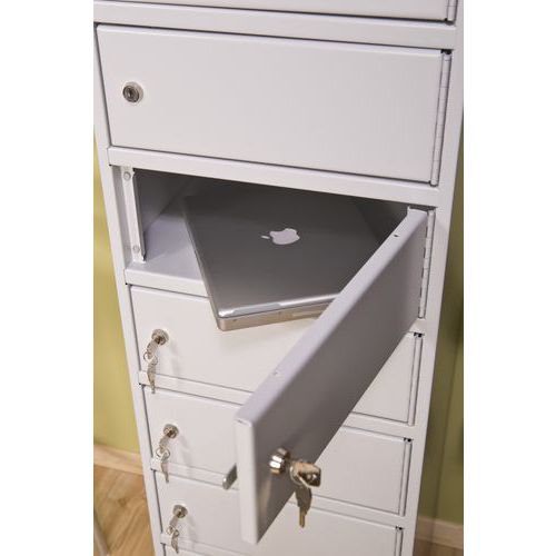 Tavaranimike Latauskaappi kannettaville, 10 lokeroa, Materiaali: Teräs, Lkm, lokerot/pylväs: 10, Leveys: 400 mm