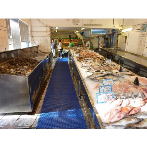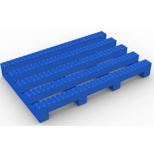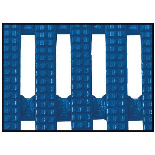 Lisää tuottavuutta. Vähentää väsymistä. Voit tilata reunoja, jotka helpottavat vaunujen ja kärryjen liikkumista, kiinnityskoukut lattiaa varten ja kiinnitysklipsit lattiaritilöiden liittämiseksi. 100 % kierrätettyä PVC:tä.