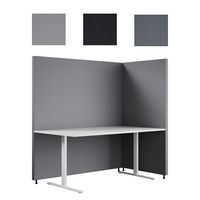 - Sarja koostuu L-muotoisesta ratkaisusta, jossa on ääntä vaimentavat paneelit Dox-kankaalla verhoiltuna.