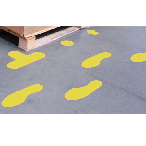 Lavapaikan merkintätarra lattiaan, Materiaali: PVC, Leveys: 200 mm, Väri: Keltainen, Viesti: Jalanjälki