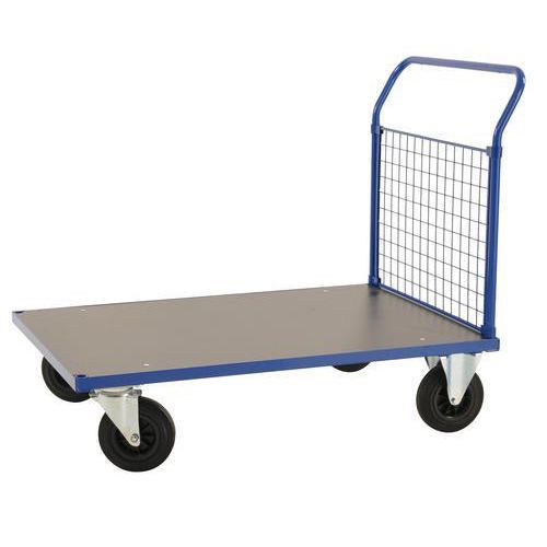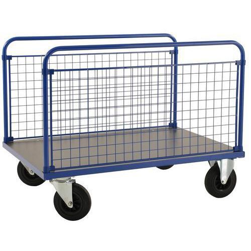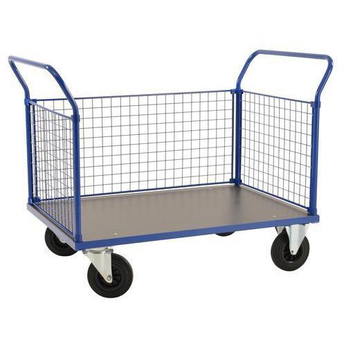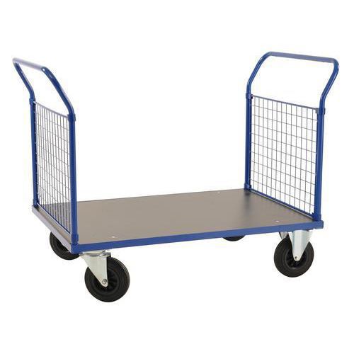 Verkkolaidat pitävät tavarat kyydissä! Runko valmistettu siniseksi maalatusta teräksestä, aisa 25 mm teräsputkea ja pohjalevy kestävää MFD-suoralaminaattia.