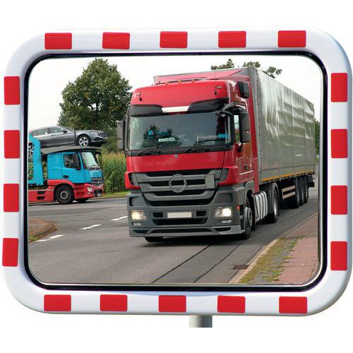 Liikennepeili akryyli punainen/valkoinen kehys, Maks etäisyys: 22 m, Muoto: Suorakulmio, Jalusta Liikennepeili akryyli punainen/valkoinen kehys, Maks etäisyys: 22 m, Muoto: Suorakulmio, Jalusta