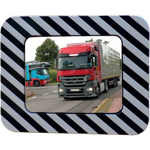 Liikennepeili ruostumatonta terästä, musta/valkoinen runko, Maks etäisyys: 15 m, Muoto: Suorakulmio, Jalusta Liikennepeili ruostumatonta terästä, musta/valkoinen runko, Maks etäisyys: 15 m, Muoto: Suorakulmio, Jalusta