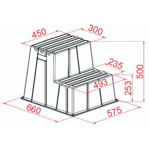 Liukumaton tikasjakkara, Maks kuormitus: 230 kg, Taso, korkeus: 500 mm, Antal steg: 2 Liukumaton tikasjakkara, Maks kuormitus: 230 kg, Taso, korkeus: 500 mm, Antal steg: 2