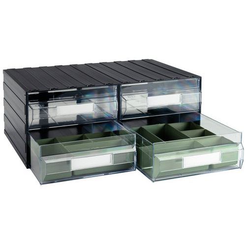 - Erikokoisia vihreitä ulosvedettäviä lokeroja erilaisiin laatikkomoduuleihin. Luo käytännöllinen säilytysjärjestelmä tarvikkeillesi. Tarvikkeita Laatikosto Solid.