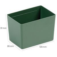 Erikokoisia vihreitä ulosvedettäviä lokeroja erilaisiin laatikkomoduuleihin. Luo käytännöllinen säilytysjärjestelmä tarvikkeillesi. Tarvikkeita Laatikosto Solid.