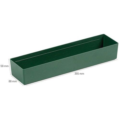Erikokoisia vihreitä ulosvedettäviä lokeroja erilaisiin laatikkomoduuleihin. Luo käytännöllinen säilytysjärjestelmä tarvikkeillesi. Tarvikkeita Laatikosto Solid.