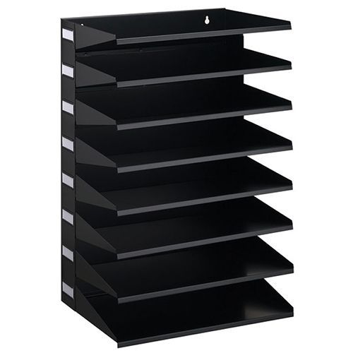 - Saatavilla kahtena versiona, joissa on 5 tai 8 kaltevaa lokeroa, jotka pitävät paperit paikoillaan.