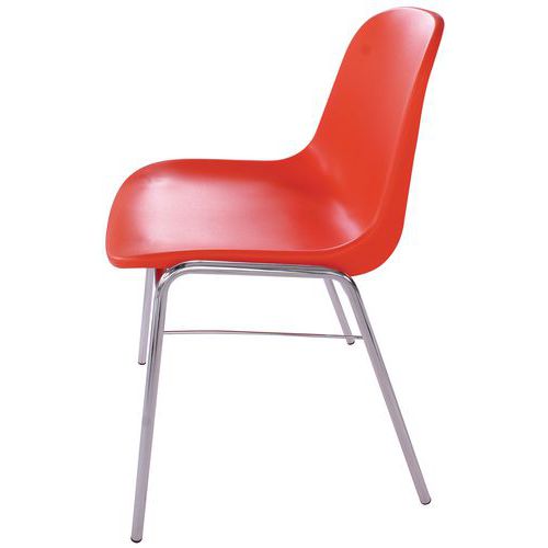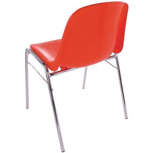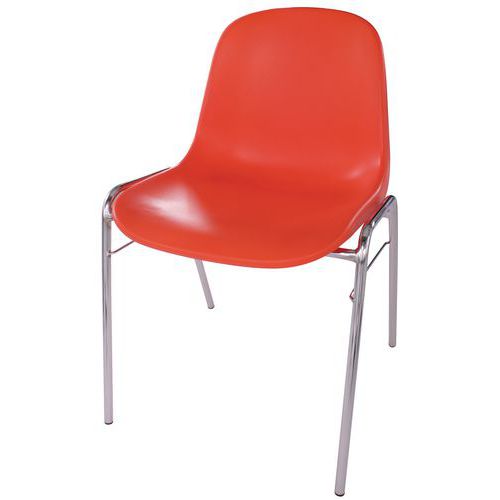 Pinottava lounastuoli / kuorituoli (10 tuolia voidaan pinota päällekkäin). Liukumattomat kalustejalat. Vankka, täysin valettu istuin ruiskuvaletusta polypropeenista. Täydellinen lisäämään väriä kokouksiin tai tekemään lounashuoneen ympäristöstä hieman hauskemman.
