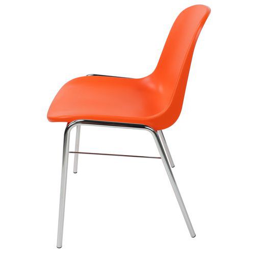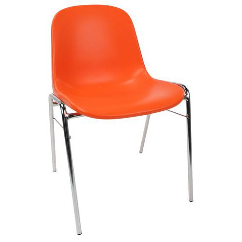 Pinottava tuoli (maks. 10 tuolia päällekkäin). Luistamattomat kalustetassut. Vankka, kokonaan valettu malli ruiskupuristettua polypropeenia. Värikkäisiin kokouksiin.