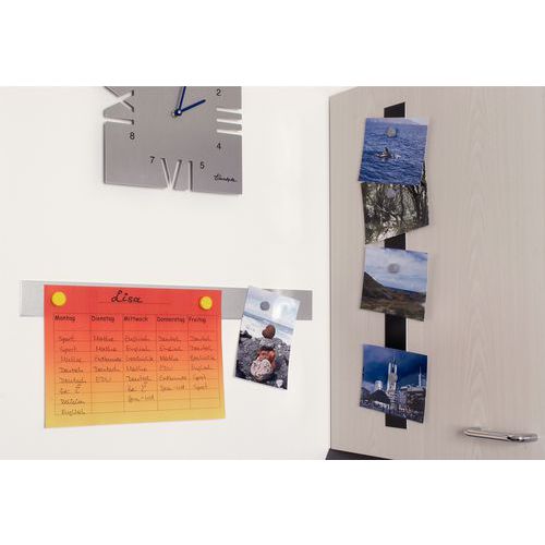 - Profiilin voi kiinnittää nauloilla. Erinomainen ratkaisu yhden tai useamman paperiarkin tilapäiseen ripustamiseen. Listaa voi jatkaa rajattomasti. Magneettinen.