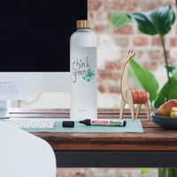 Merkintäkynä pysyvällä jäljellä.  Alkoholipohjainen muste, jonka haju on mieto.  Valonkestävä.  Nopeasti kuivuva.   96 % kierrätysmuovia.