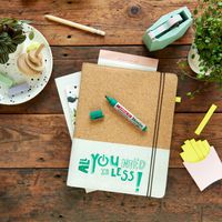 Merkintäkynä pysyvällä jäljellä.  Alkoholipohjainen muste, jonka haju on mieto.  Valonkestävä.  Nopeasti kuivuva.   96 % kierrätysmuovia.